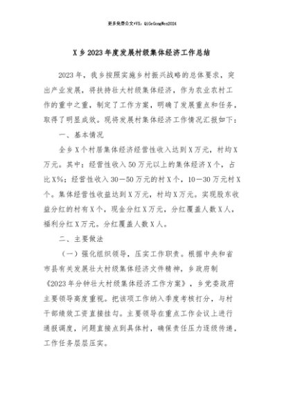 / 【七哥公文】2024年:X乡2023年度发展村级集体经济工作总结+更多免费公文+VX:QiGeGongWen2024