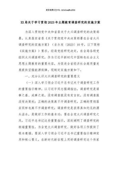 【七哥公文】2024年:XX局关于学习贯彻2023年主题教育调查研究的实施方案+更多免费公文+VX:QiGeGongWen2024
