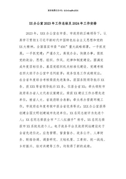 / 【七哥公文】2024年:XX办公室2023年工作总结及2024年工作安排+更多免费公文+VX:QiGeGongWen2024