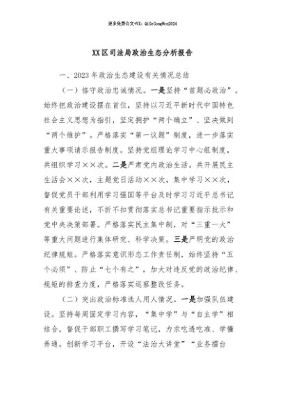 【七哥公文】2024年:XX区司法局政治生态分析报告+更多免费公文+VX:QiGeGongWen2024