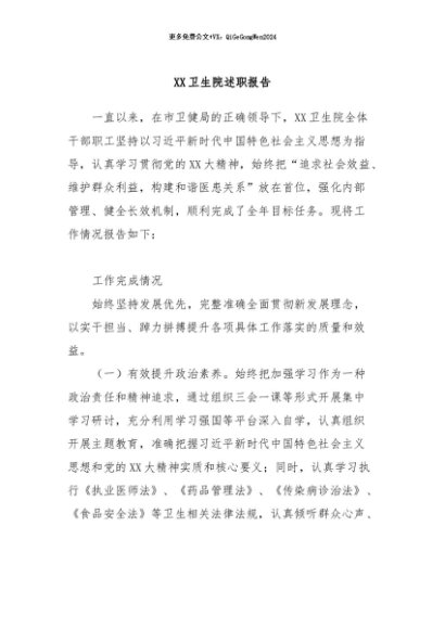/ 【七哥公文】2024年:XX卫生院述职报告+更多免费公文+VX:QiGeGongWen2024