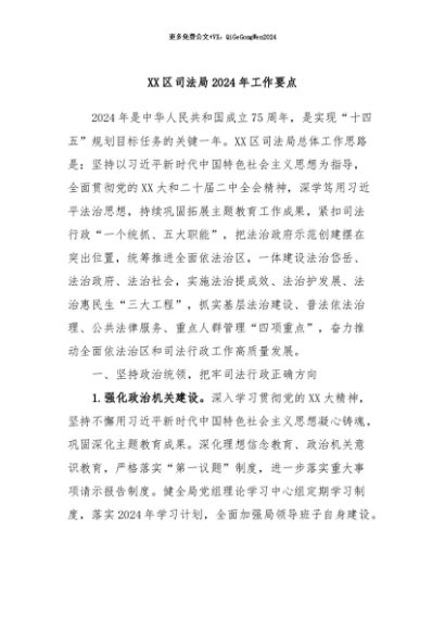 【七哥公文】2024年:XX区司法局2024年工作要点+更多免费公文+VX:QiGeGongWen2024