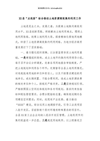 【七哥公文】2024年:XX县“点线面”结合推动土地资源高效集约利用工作+更多免费公文+VX:QiGeGongWen2024