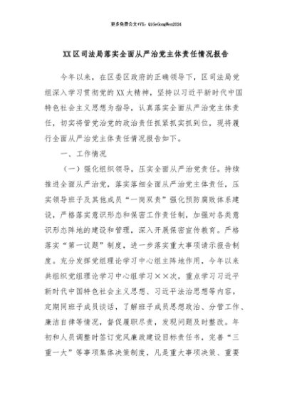 / 【七哥公文】2024年:XX区司法局落实全面从严治党主体责任情况报告+更多免费公文+VX:QiGeGongWen2024