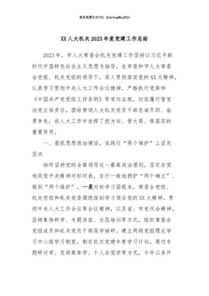/ 【七哥公文】2024年:XX人大机关2023年度党建工作总结+更多免费公文+VX:QiGeGongWen2024