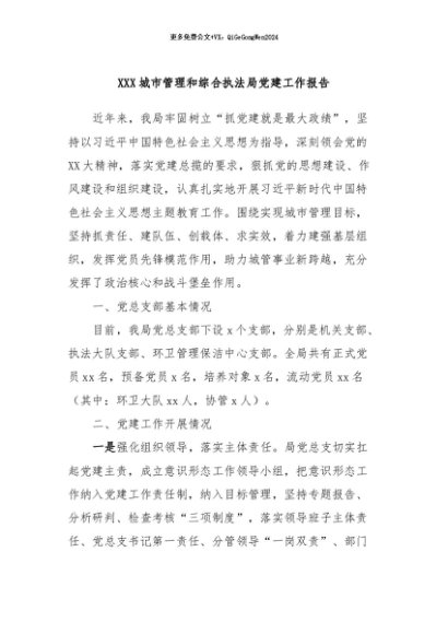 【七哥公文】2024年:XXX城市管理和综合执法局党建工作报告+更多免费公文+VX:QiGeGongWen2024