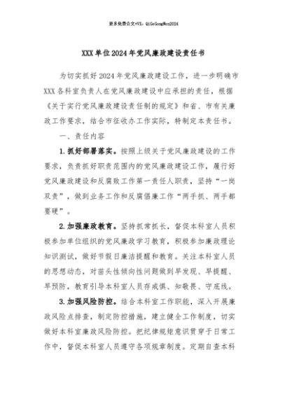 / 【七哥公文】2024年:XXX单位2024年党风廉政建设责任书+更多免费公文+VX:QiGeGongWen2024