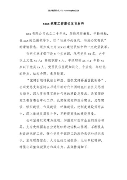 / 【七哥公文】2024年:xxxx党建工作座谈发言材料+更多免费公文+VX:QiGeGongWen2024