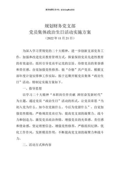 / 【七哥公文】2024年:3-规划财务党支部党员集体政治生日活动实施方案+更多免费公文+VX:QiGeGongWen2024