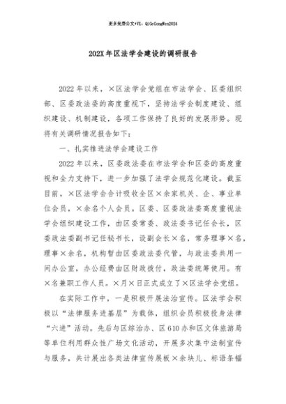 / 【七哥公文】2024年:202X年区法学会建设的调研报告+更多免费公文+VX:QiGeGongWen2024