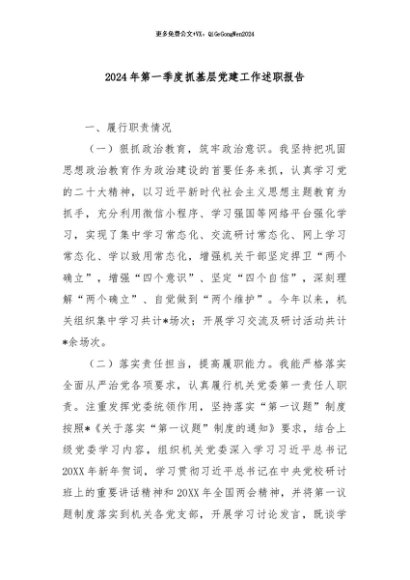 / 【七哥公文】2024年:2024年第一季度抓基层党建工作述职报告+更多免费公文+VX:QiGeGongWen2024