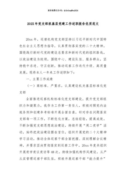 / 【七哥公文】2024年:202X年党支部抓基层党建工作述职报告优质范文+更多免费公文+VX:QiGeGongWen2024