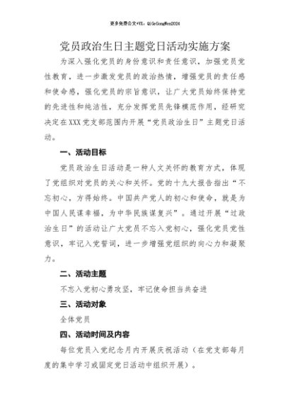 【七哥公文】2024年:3-党员政治生日活动实施方案+更多免费公文+VX:QiGeGongWen2024