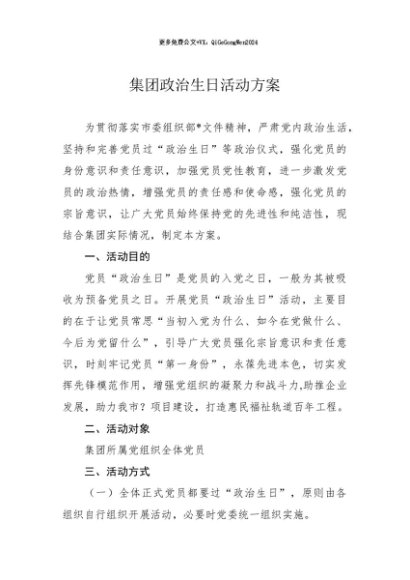 【七哥公文】2024年:3-集团政治生日活动方案+更多免费公文+VX:QiGeGongWen2024