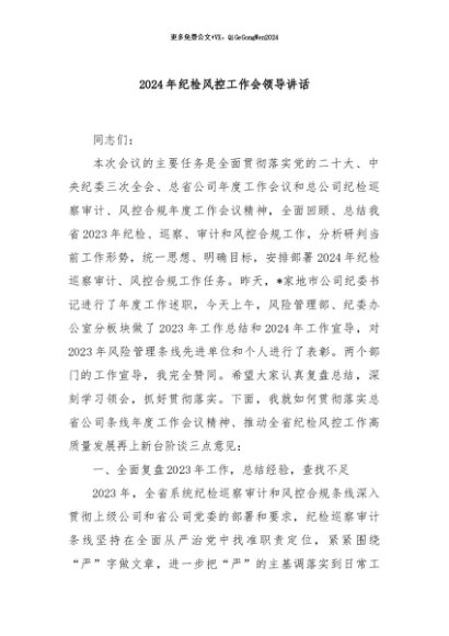 / 【七哥公文】2024年:2024年纪检风控工作会领导讲话+更多免费公文+VX:QiGeGongWen2024
