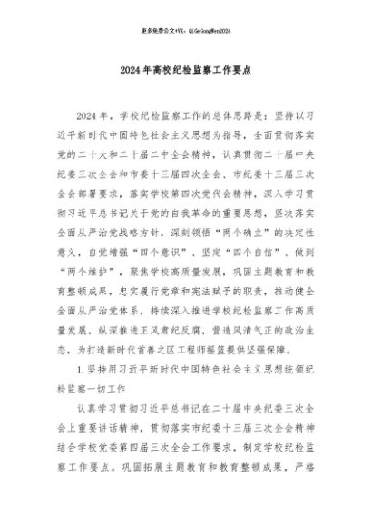 / 【七哥公文】2024年:2024年高校纪检监察工作要点+更多免费公文+VX:QiGeGongWen2024