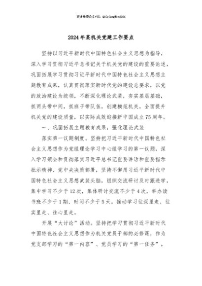 / 【七哥公文】2024年:2024年某机关党建工作要点+更多免费公文+VX:QiGeGongWen2024