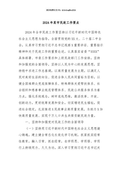 / 【七哥公文】2024年:2024年某市民政工作要点+更多免费公文+VX:QiGeGongWen2024