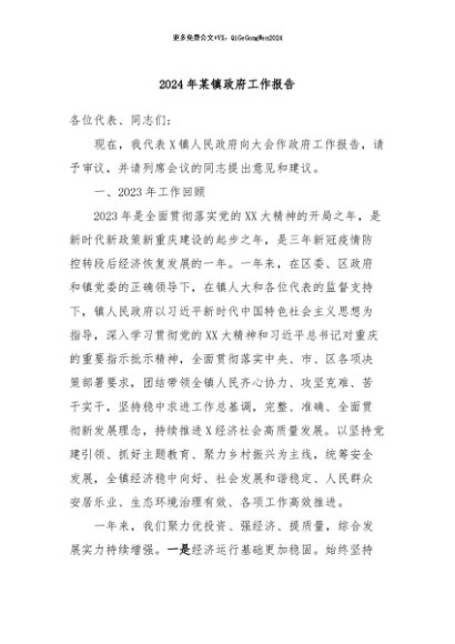 / 【七哥公文】2024年:2024年某镇政府工作报告+更多免费公文+VX:QiGeGongWen2024