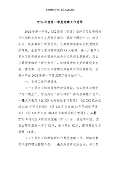 / 【七哥公文】2024年:2024年度第一季度党建工作总结+更多免费公文+VX:QiGeGongWen2024