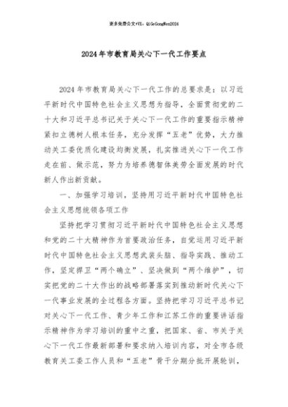 / 【七哥公文】2024年:2024年市教育局关心下一代工作要点+更多免费公文+VX:QiGeGongWen2024