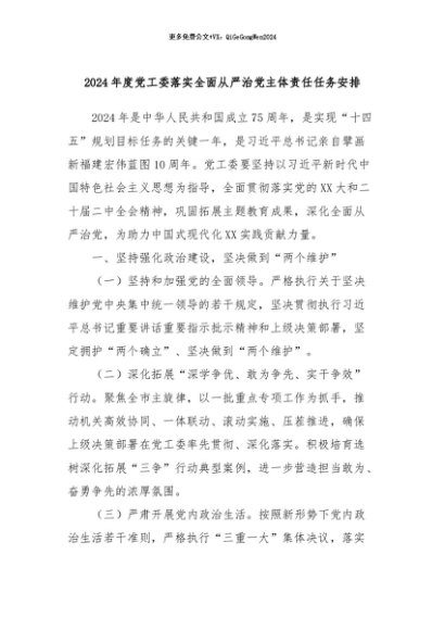 【七哥公文】2024年:2024年度党工委落实全面从严治党主体责任任务安排+更多免费公文+VX:QiGeGongWen2024