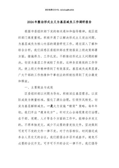 / 【七哥公文】2024年:2024年整治形式主义为基层减负工作调研报告+更多免费公文+VX:QiGeGongWen2024