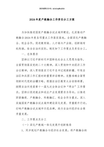 / 【七哥公文】2024年:2024年度产教融合工作责任分工方案+更多免费公文+VX:QiGeGongWen2024