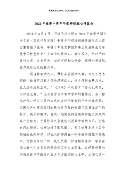 / 【七哥公文】2024年:2024年春季中青年干部培训班心得体会+更多免费公文+VX:QiGeGongWen2024