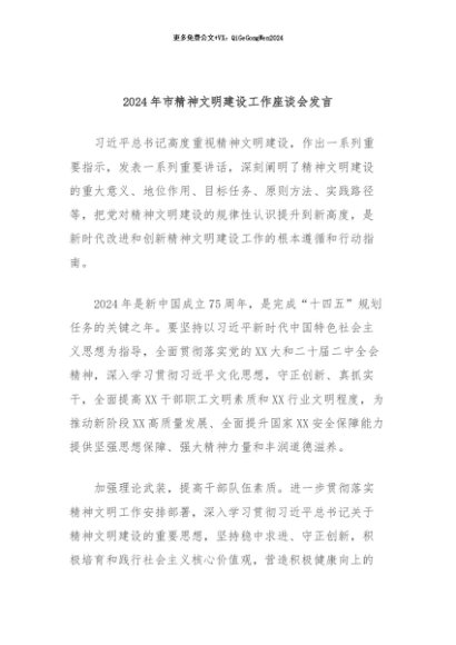 / 【七哥公文】2024年:2024年市精神文明建设工作座谈会发言+更多免费公文+VX:QiGeGongWen2024