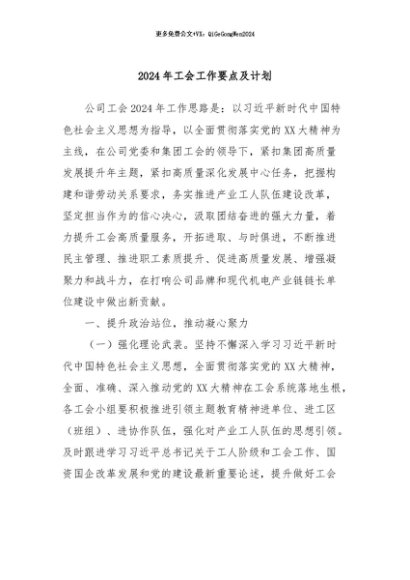 / 【七哥公文】2024年:2024年工会工作要点及计划 (1)+更多免费公文+VX:QiGeGongWen2024