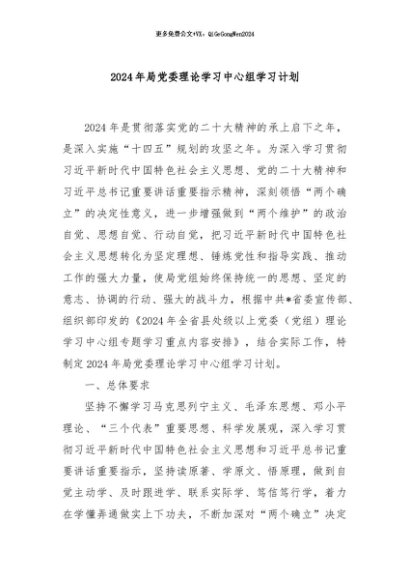 / 【七哥公文】2024年:2024年局党委理论学习中心组学习计划+更多免费公文+VX:QiGeGongWen2024