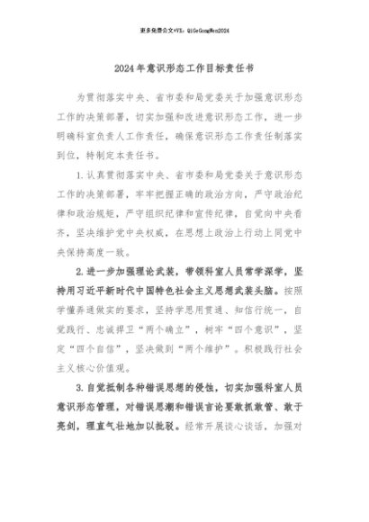 / 【七哥公文】2024年:2024年意识形态工作目标责任书+更多免费公文+VX:QiGeGongWen2024