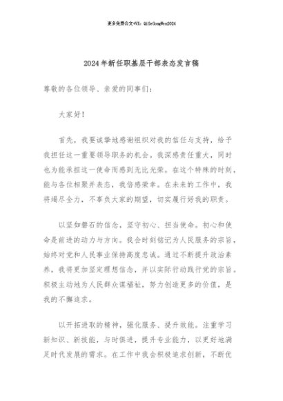 / 【七哥公文】2024年:2024年新任职基层干部表态发言稿+更多免费公文+VX:QiGeGongWen2024