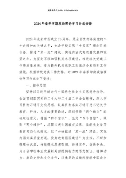 【七哥公文】2024年:2024年春季学期政治理论学习计划安排+更多免费公文+VX:QiGeGongWen2024