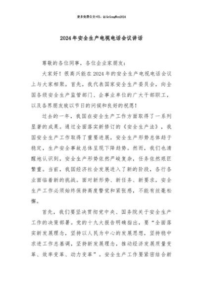 / 【七哥公文】2024年:2024年安全生产电视电话会议讲话+更多免费公文+VX:QiGeGongWen2024