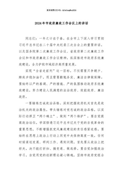 / 【七哥公文】2024年:2024年市政府廉政工作会议上的讲话+更多免费公文+VX:QiGeGongWen2024