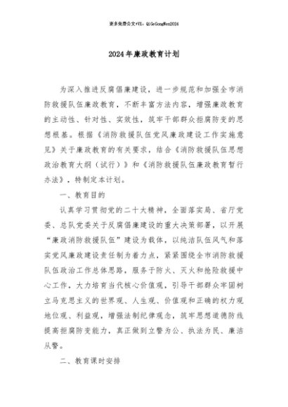 / 【七哥公文】2024年:2024年廉政教育计划+更多免费公文+VX:QiGeGongWen2024