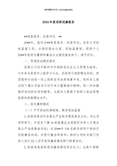 / 【七哥公文】2024年:2024年度述职述廉报告+更多免费公文+VX:QiGeGongWen2024