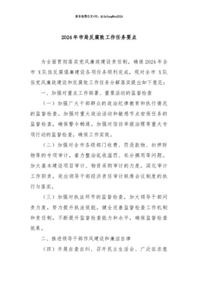/ 【七哥公文】2024年:2024年市局反腐败工作任务要点+更多免费公文+VX:QiGeGongWen2024