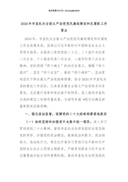 【七哥公文】2024年:2024年市直机关全面从严治党党风廉政建设和反腐败工作要点+更多免费公文+VX:QiGeGongWen2024