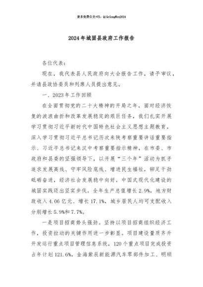 / 【七哥公文】2024年:2024年城固县政府工作报告+更多免费公文+VX:QiGeGongWen2024