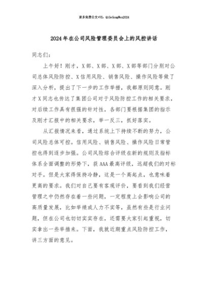 / 【七哥公文】2024年:2024年在公司风险管理委员会上的风控讲话+更多免费公文+VX:QiGeGongWen2024