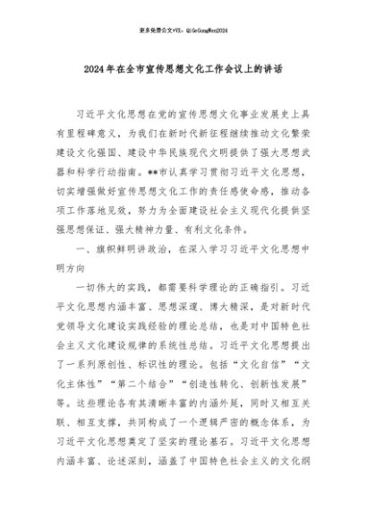 / 【七哥公文】2024年:2024年在全市宣传思想文化工作会议上的讲话+更多免费公文+VX:QiGeGongWen2024