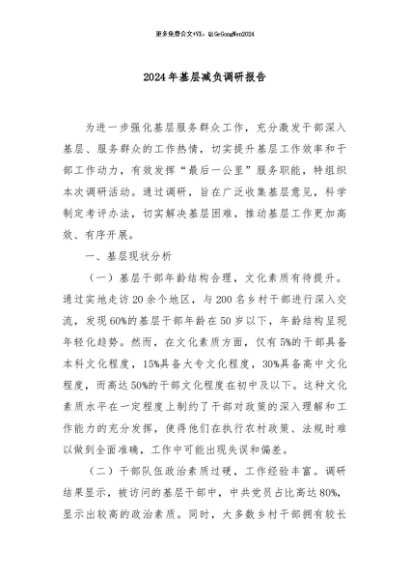 / 【七哥公文】2024年:2024年基层减负调研报告+更多免费公文+VX:QiGeGongWen2024