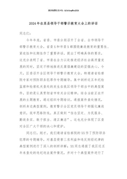 / 【七哥公文】2024年:2024年在某县领导干部警示教育大会上的讲话+更多免费公文+VX:QiGeGongWen2024