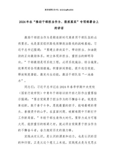 【七哥公文】2024年:2024年在“推动干部担当作为、狠抓落实”专项部署会上的讲话+更多免费公文+VX:QiGeGongWen2024