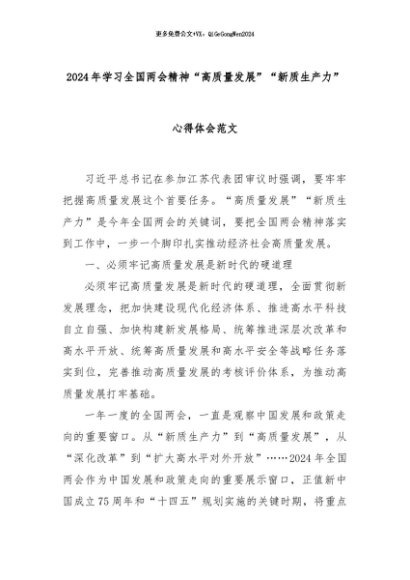 【七哥公文】2024年:2024年学习全国两会精神“高质量发展”“新质生产力”心得体会范文+更多免费公文+VX:QiGeGongWen2024
