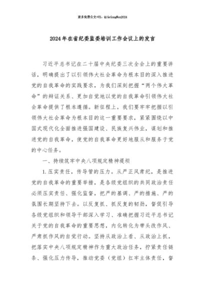 / 【七哥公文】2024年:2024年在省纪委监委培训工作会议上的发言+更多免费公文+VX:QiGeGongWen2024