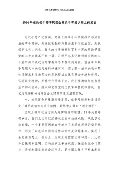 【七哥公文】2024年:2024年在延安干部学院国企党员干部培训班上的发言+更多免费公文+VX:QiGeGongWen2024